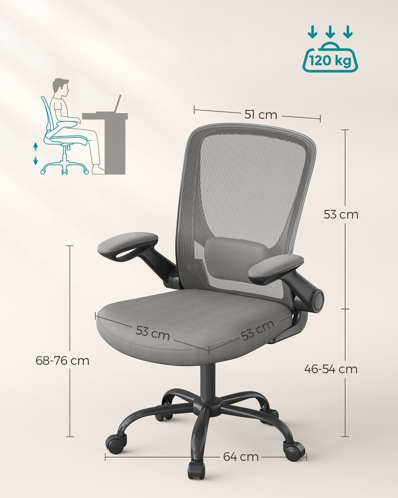 S-veida atzveltne pielāgojas muguras dabiskajai formai, savukārt regulējamais jostas balsts palīdz samazināt slodzi uz muguru un novērst nogurumu ilgstošas sēdēšanas laikā.