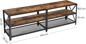 Piešķiriet savai mājai industriālu eleganci ar šo funkcionālo un stilīgo TV galdu, kas lieliski piemērots jūsu izklaides piederumu kārtošanai un izvietošanai.
