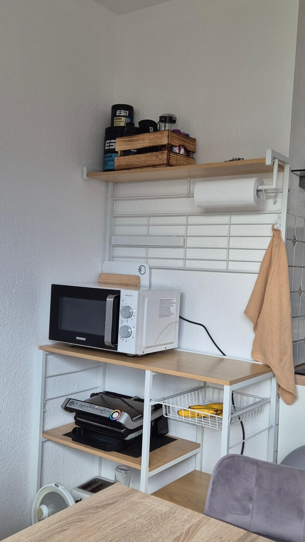 1 x virtuves plaukts 12 x S veida āķi 1 x piederumu komplekts 1 x aizsardzība pret sasvēršanos 1 x instrukcija