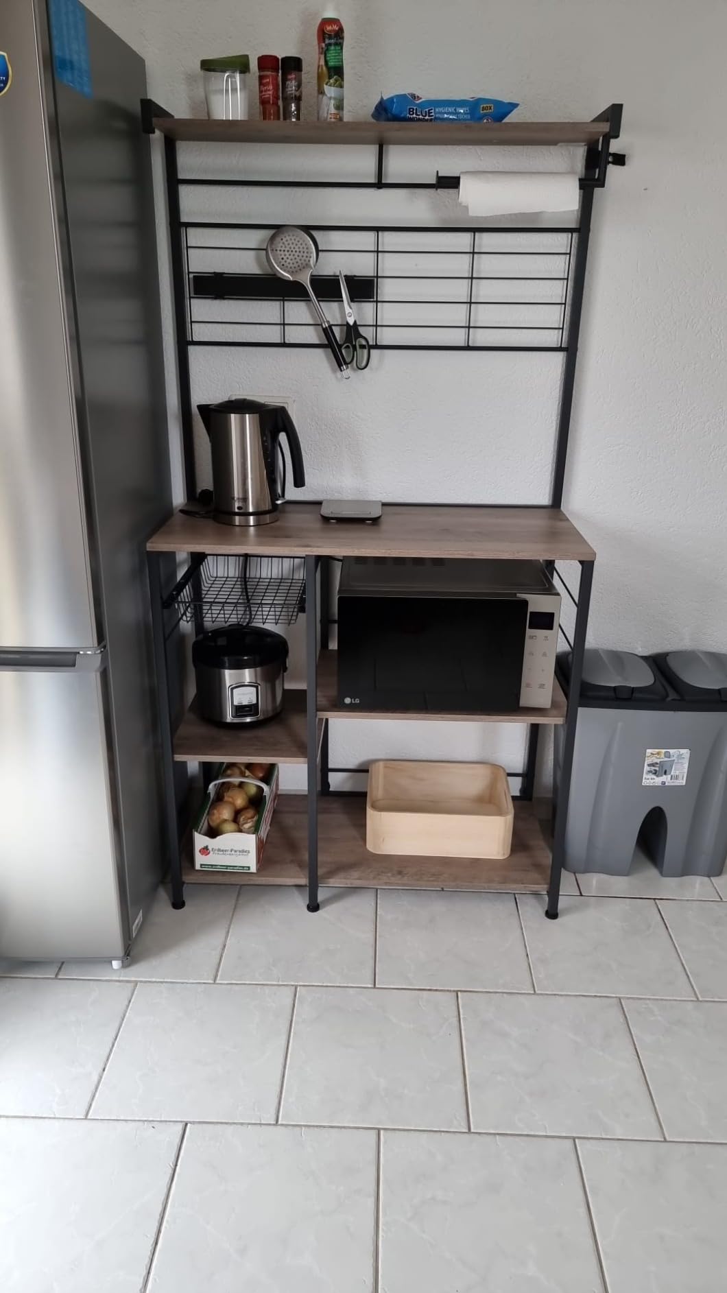 Bērniem drošības apsvērumu dēļ ir aizliegts kāpt vai spēlēties ar virtuves salu. Lai nodrošinātu drošu lietošanu, lūdzu, piestipriniet pie sienas ar komplektā esošo sasvēršanās aizsargu. Higiēnas apsvērumu dēļ nenovietojiet pārtiku tieši metāla stiepļu grozā. Neizmantojiet šo virtuves plauktu mitrā vidē, lai izvairītos no bojājumiem.