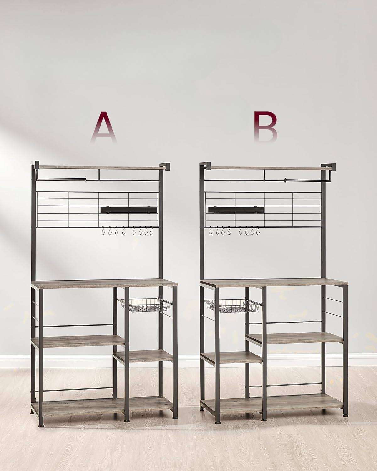 1 x virtuves plaukts 12 x S veida āķi 1 x piederumu komplekts 1 x aizsardzība pret sasvēršanos 1 x instrukcija